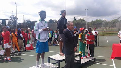 | Nigeria’s Michael Osewa (left) during the presentation of the Boys’ 14&under at the 39th ITF/CAT African Junior Championship in Pretoria South, Africa |